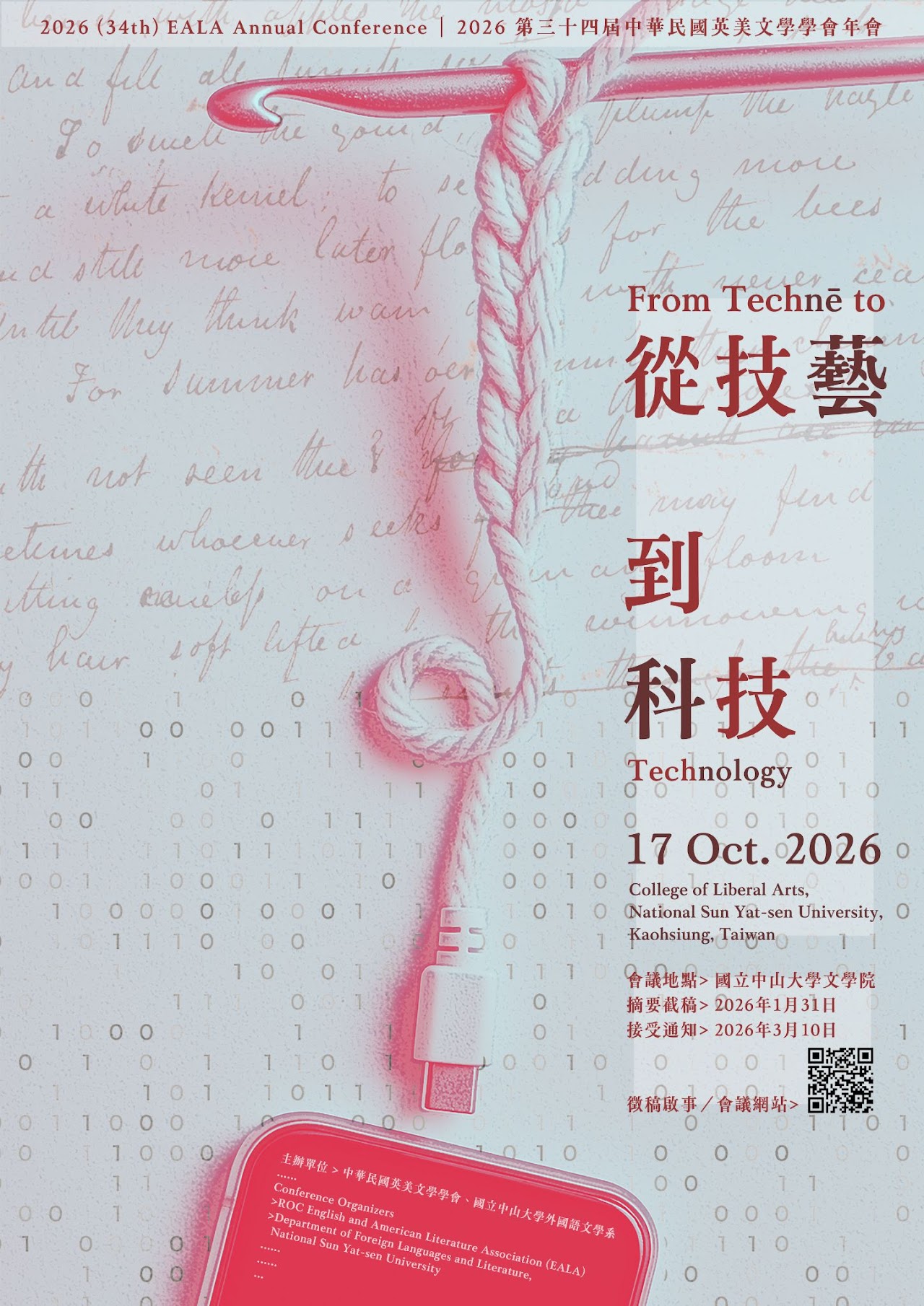 【年會徵稿】《2026第34屆英美文學學會年會》中華民國英美文學學會、國立中山大學外國語文學系