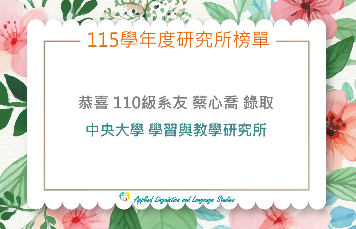 賀! 110級系友蔡心喬錄取 中央大學學習與教學研究所