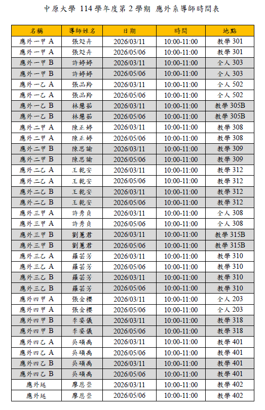 114學年度第2學期 院週會、系主任導師時間、導師時間公告