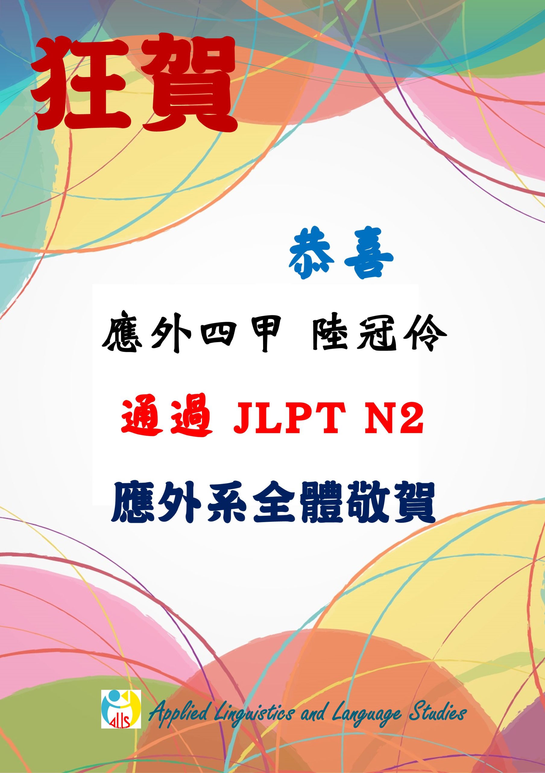 賀!! 應外四甲 陸冠伶 通過 JPLT N2