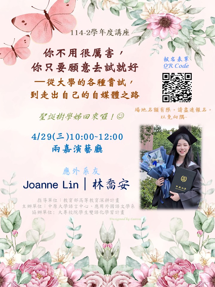 4/29講座【你不用很厲害,你只要願意去試就好—從大學的各種嘗試,到走出自己的自媒體之路 】歡迎有興趣的同學踴躍報名參加!
