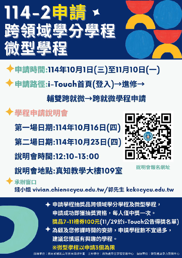 114學年度第2學期申請跨領域學分學程及微型學程作業事宜公告