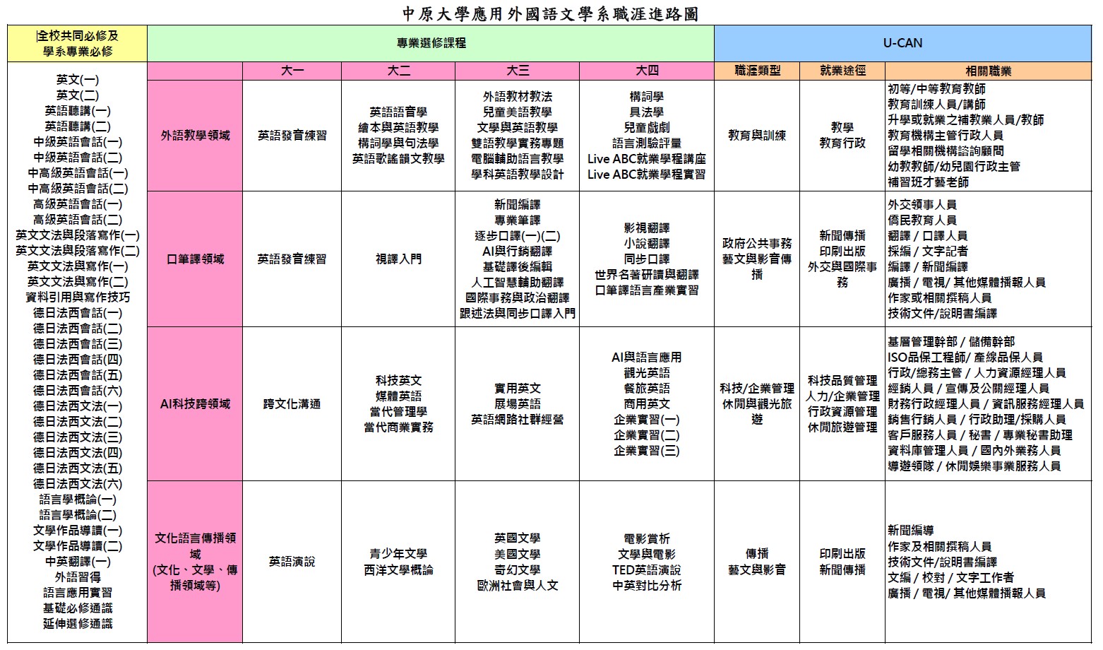 應外系大學部U-CAN職涯進路圖